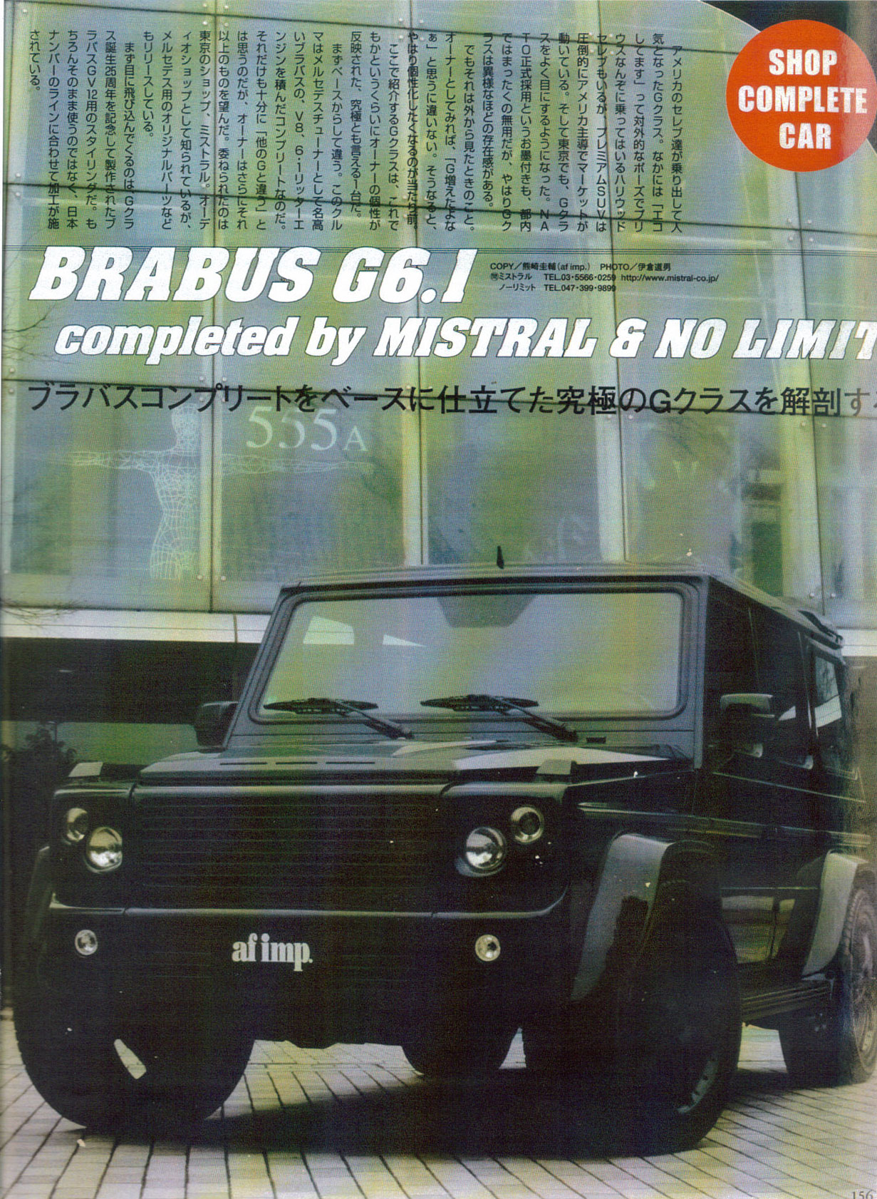 BRABUS G6.1 のオリジナルパーツを掲載しております。 詳細は 156ページ / 157ページ をクリックしてください。 |