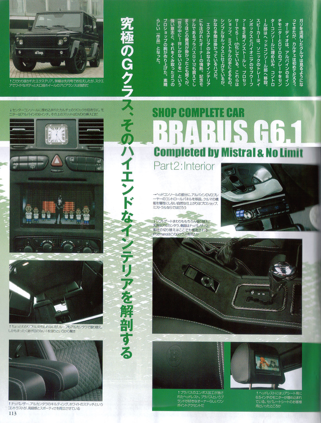 BRABUS G6.1 のオリジナルインテリアを掲載しております。 詳細は 112ページ / 113ページ をクリックしてください。 |